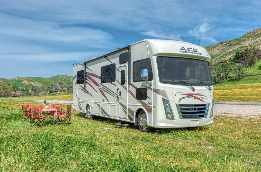 Road Bear A 30-32 O RV final com massas de espaço interior, uma vista panorâmica janela para apreciar a paisagem, todas as comodidades de casa