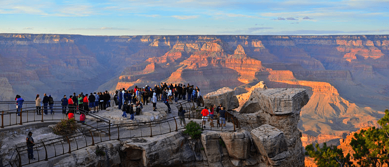 A infraestrutura da região é muito boa e há várias vias de acesso. Uma opção interessante é fazer seu roteiro a partir de Las Vegas, pegando a Route 66 e tendo a oportunidade de conhecer várias cidadezinhas históricas dos Estados Unidos até Williams, quando o viajante deve tomar a US-180, passar pela cidade de Tusayan, e então, chegar à entrada principal do Grand Canyon National Park.